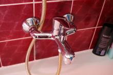 Ich installiere die neue Wannen-Armatur, die ich bei Obi vom Grabbeltisch geholt habe. Endlich hört das verkalkte Geklecker auf.