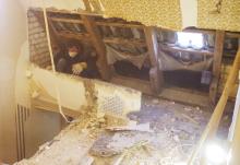 Im neuen Badezimer muss noch der Rest der Decke runter. Wir müssen reichlich forschen und probieren um die richtigen Balken abzusägen. Und als wir uns dann gemeinsam an die Dachschale hängen, kommt der ganze Mist in einem Stück runter. Klasse!